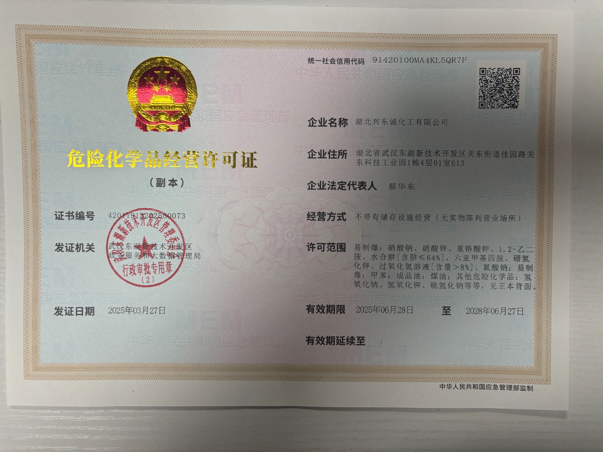 危险化学品经营许可证